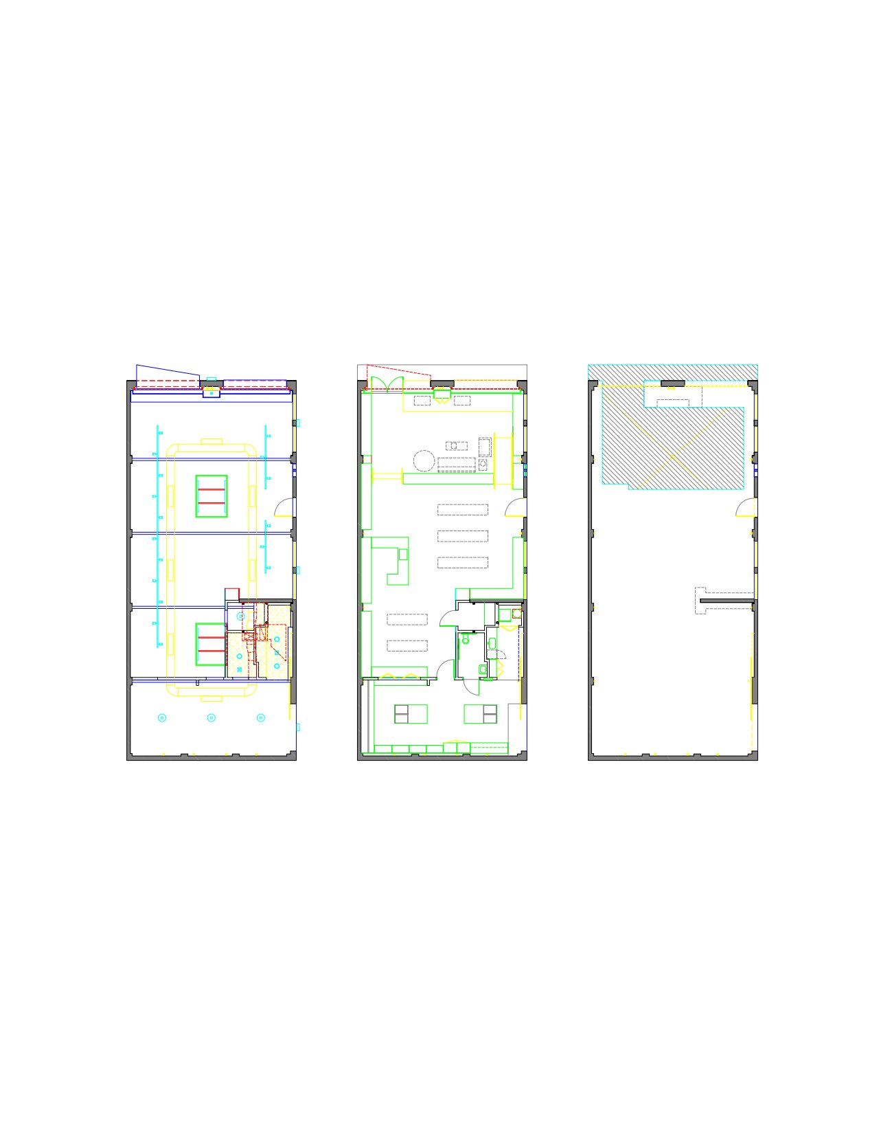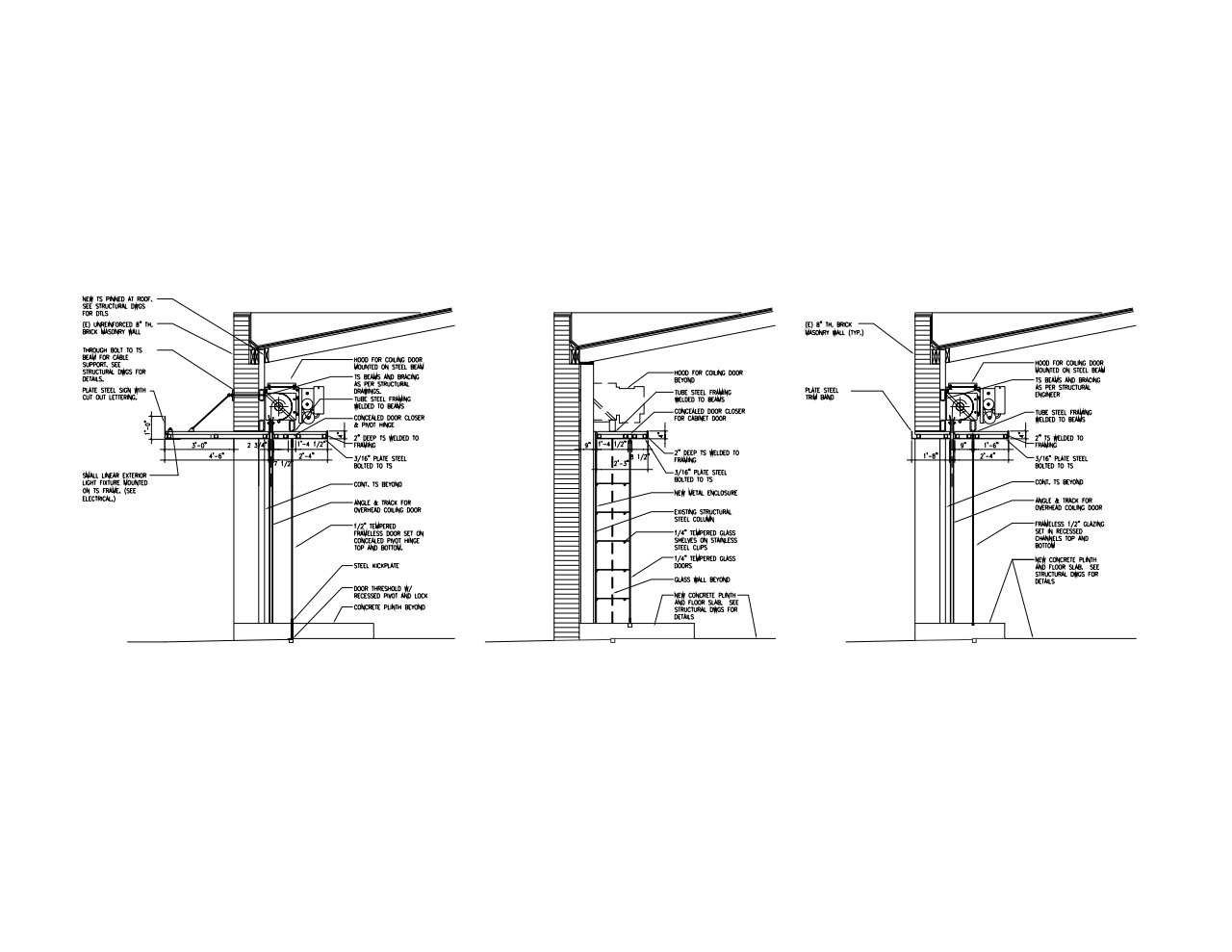 The lack of light was resolved by replacing the solid garage doors in front with new storefront glass, adding 2 new skylights in the roof, drywalling and painting the ceiling white, and uncovering and restoring the existing steel windows. With new lighting, MEP and finishes, the store opened to fanfare and doubled their sale volume.